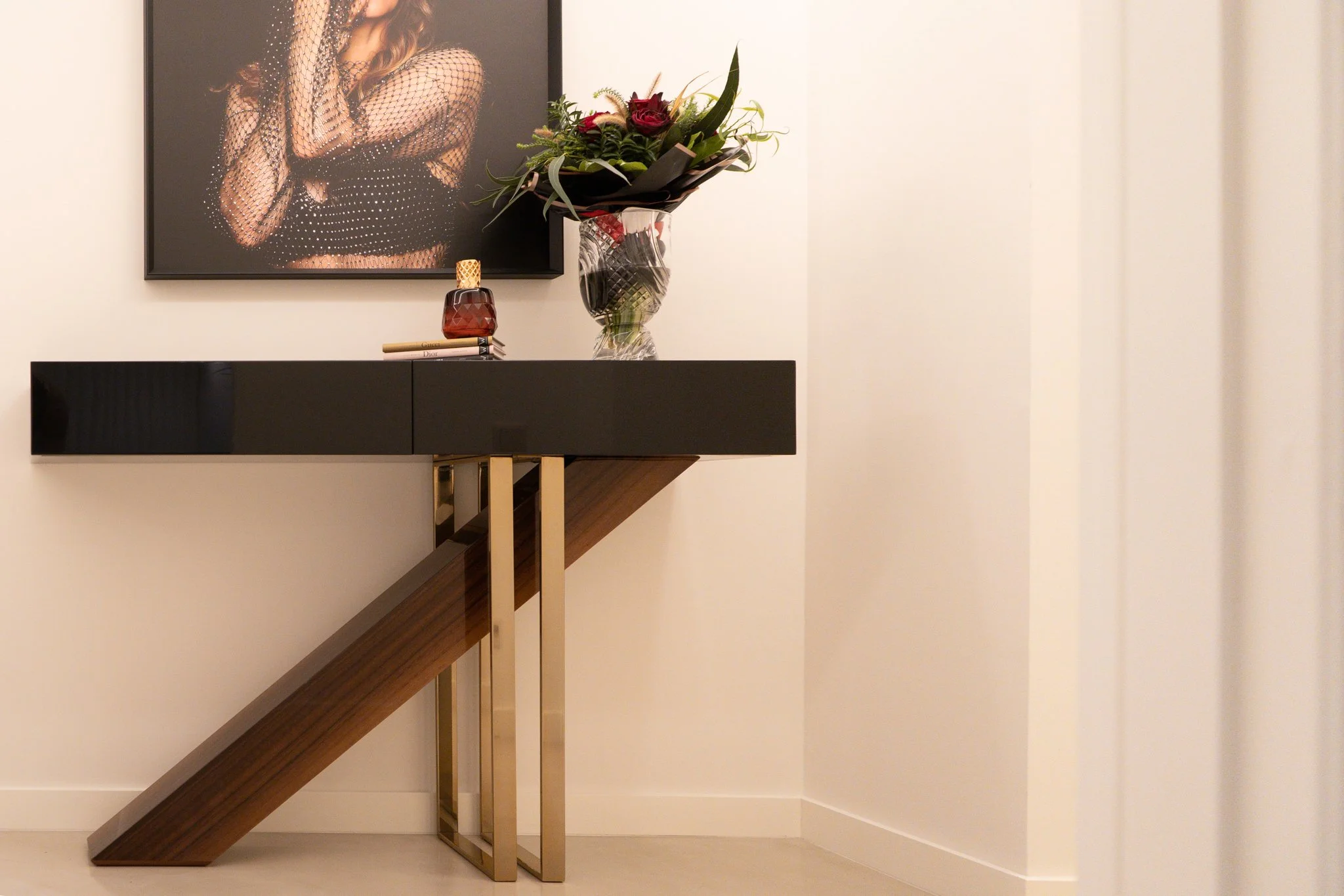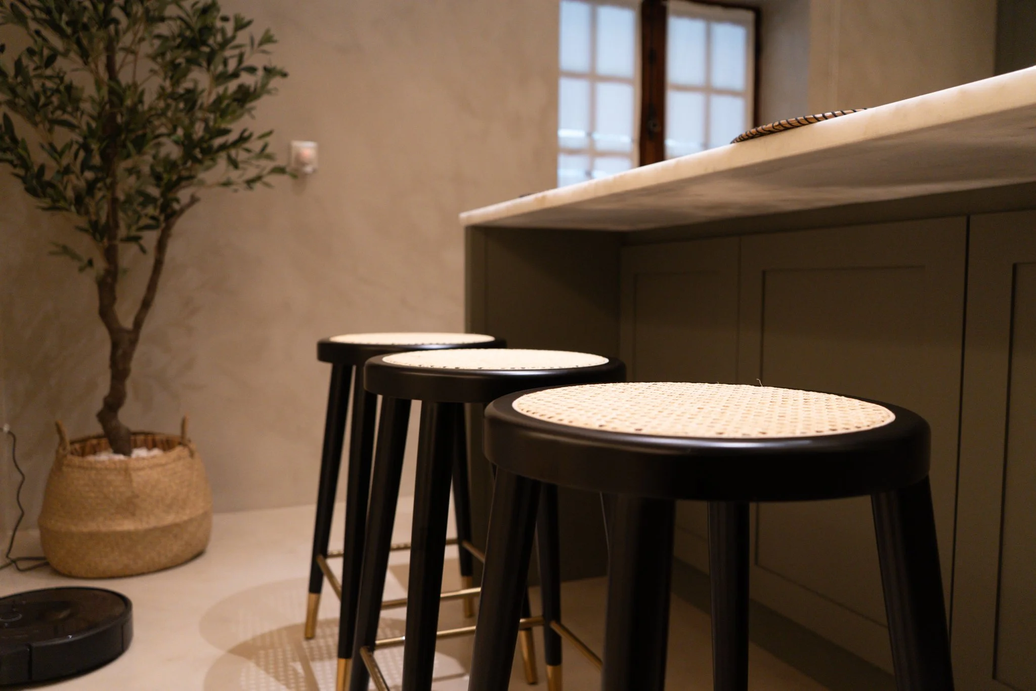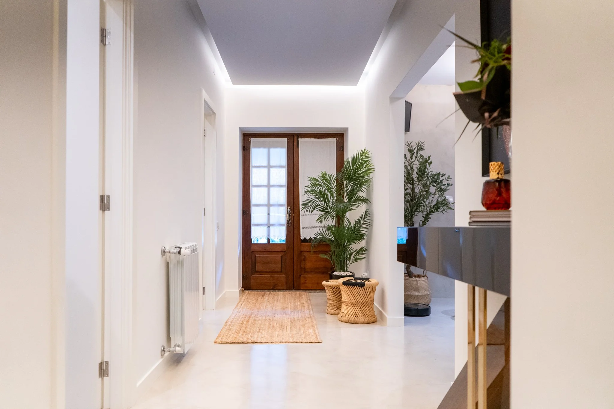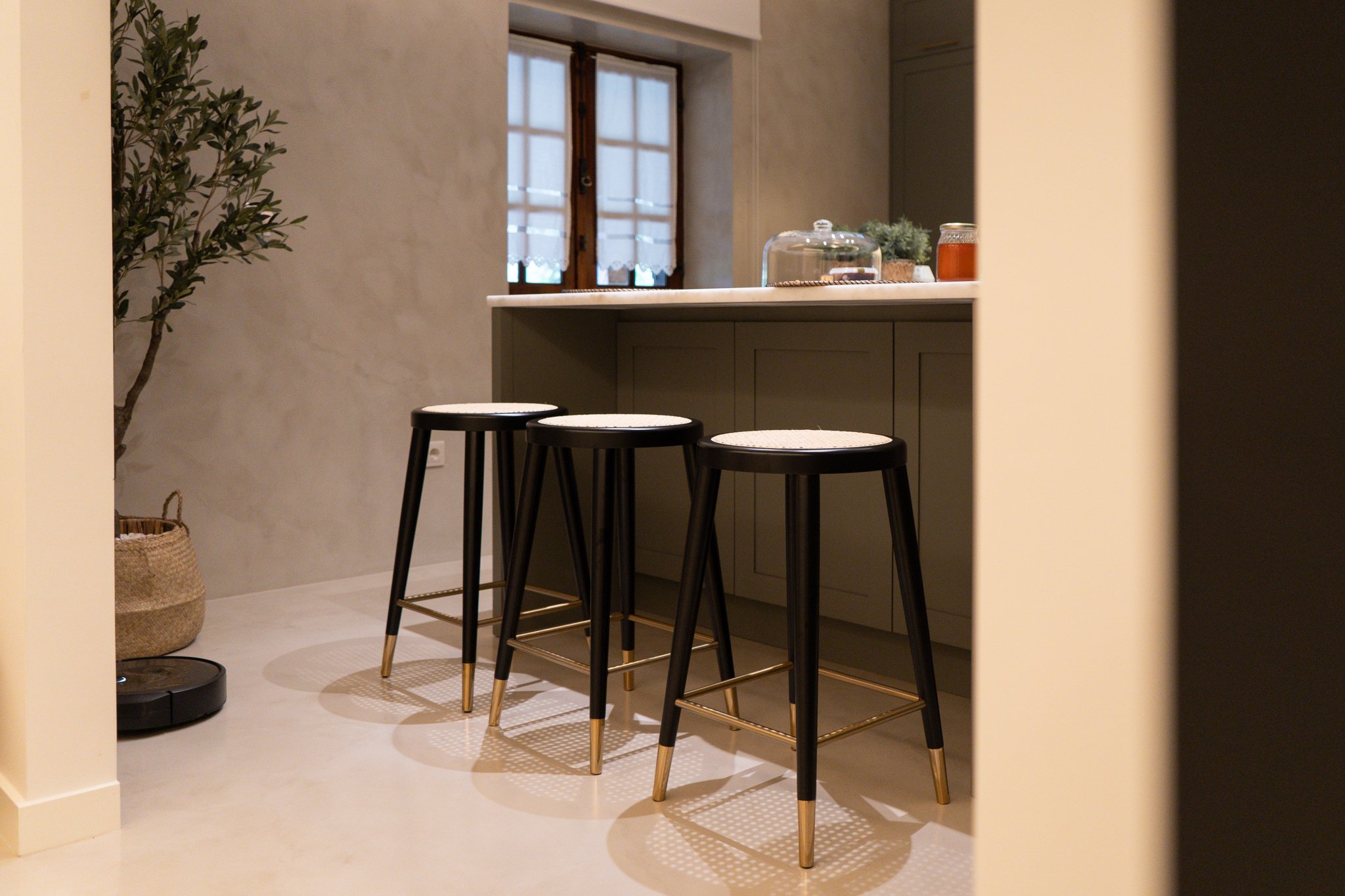 Projeto completo de design de interiores moderno, com sala de estar, sala de jantar, quarto e hall de entrada, desenvolvido com mobiliário por medida em madeira de eucalipto, bancos de palhinha e detalhes dourados que conferem elegância e sofisticação aos espaços. A combinação de tons neutros, texturas naturais e acabamentos metálicos cria ambientes acolhedores, funcionais e visualmente harmoniosos. Uma solução de decoração contemporânea, que valoriza a luz natural, o conforto e a estética, perfeita para quem procura um projeto de interiores personalizado e exclusivo.